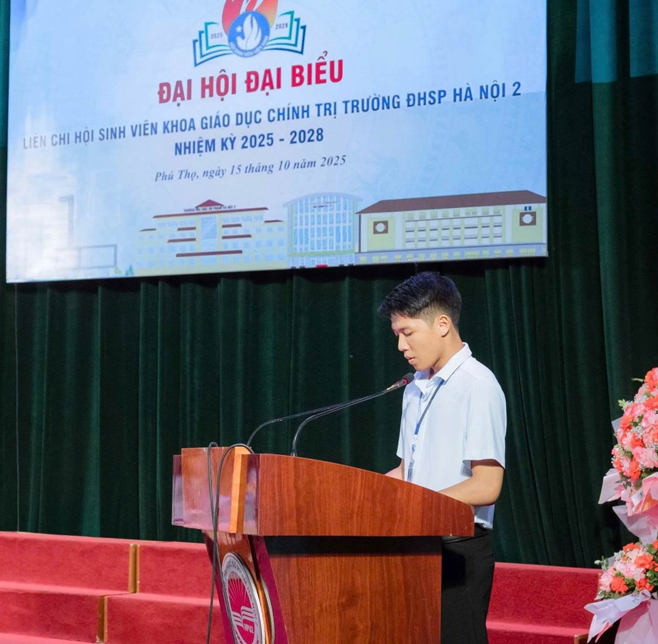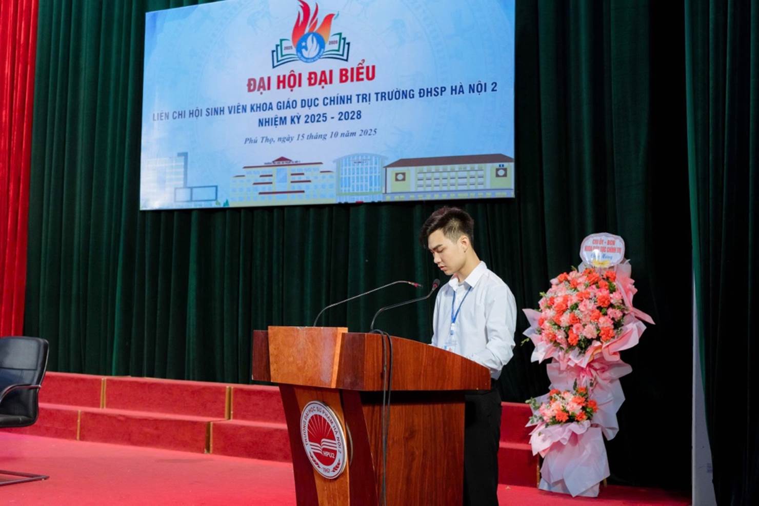 Chiều ngày 15 tháng 10 năm 2025, tại Hội trường 14/8 Trường Đại học Sư phạm Hà Nội 2, Đại hội Đại biểu Liên Chi Hội sinh viên khoa Giáo dục Chính trị nhiệm kì 2025 - 2028 đã diễn ra trong không khí trang trọng, sôi nổi và tràn đầy nhiệt huyết.