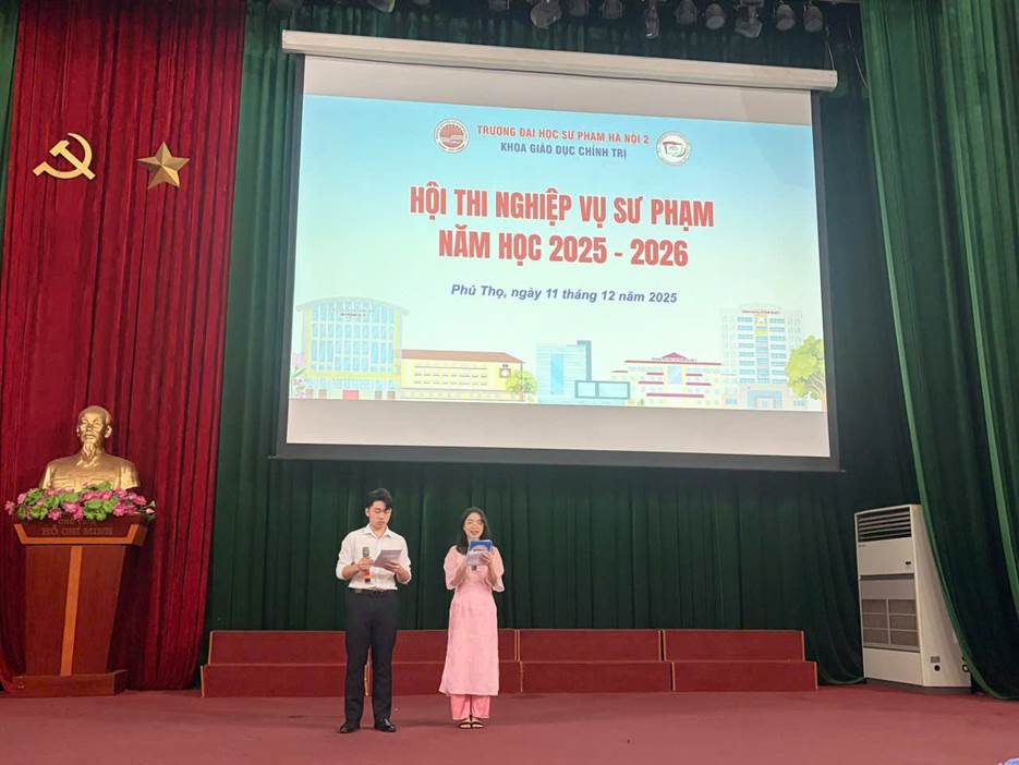 Thực hiện kế hoạch hoạt động năm học và nhằm tăng cường rèn luyện kỹ năng nghề nghiệp cho sinh viên, ngày 11 tháng 12 năm 2025, Khoa Giáo dục Chính trị – Trường Đại học Sư phạm Hà Nội 2 đã tổ chức Hội thi Nghiệp vụ sư phạm cấp Khoa năm học 2025–2026. Đây là hoạt động chuyên môn có ý nghĩa sâu sắc, góp phần nâng cao chất lượng đào tạo giáo viên và tạo môi trường để sinh viên thể hiện bản lĩnh, trí tuệ cũng như tinh thần đổi mới sáng tạo
