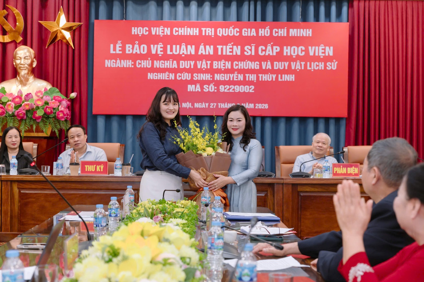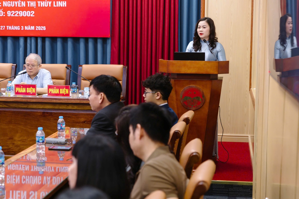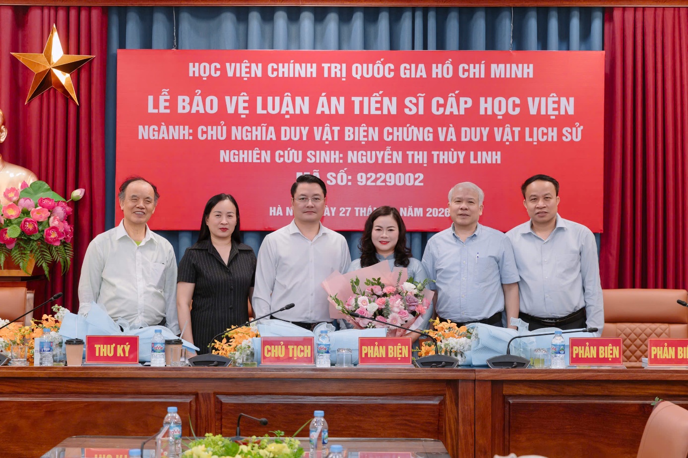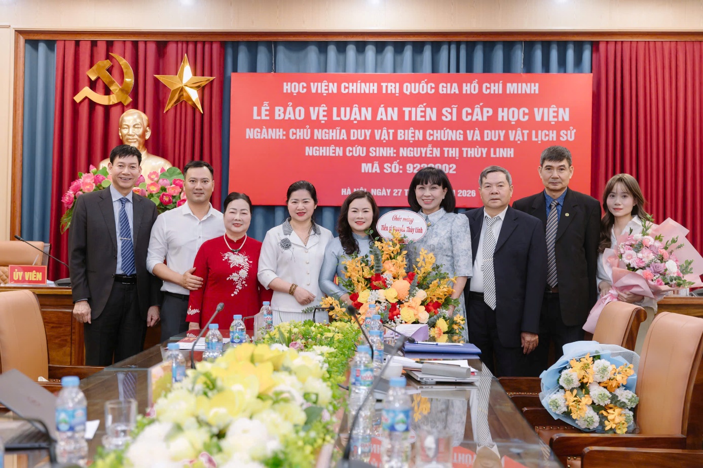 Trong không gian trang trọng nhưng cũng đầy cảm xúc tại Học viện Chính trị quốc gia Hồ Chí Minh vào chiều ngày 27/03/2026, một cột mốc ý nghĩa trong sự nghiệp học thuật của NCS Nguyễn Thị Thuỳ Linh – giảng viên Khoa Giáo dục Chính trị, Trường Đại học Sư phạm Hà Nội 2 đã chính thức được xác lập. Đó là thời khắc cô bảo vệ thành công luận án Tiến sĩ chuyên ngành Chủ nghĩa duy vật biện chứng và duy vật lịch sử.